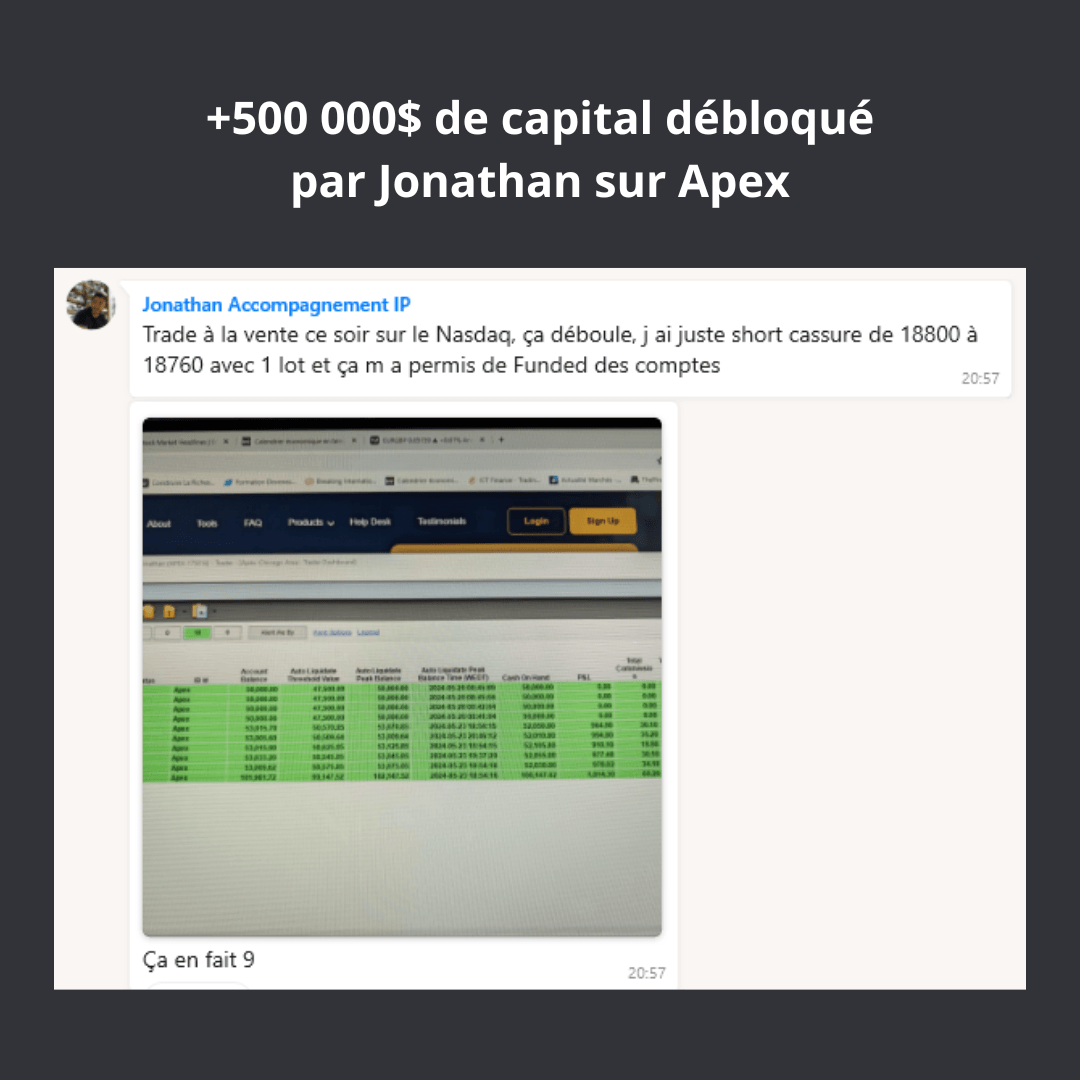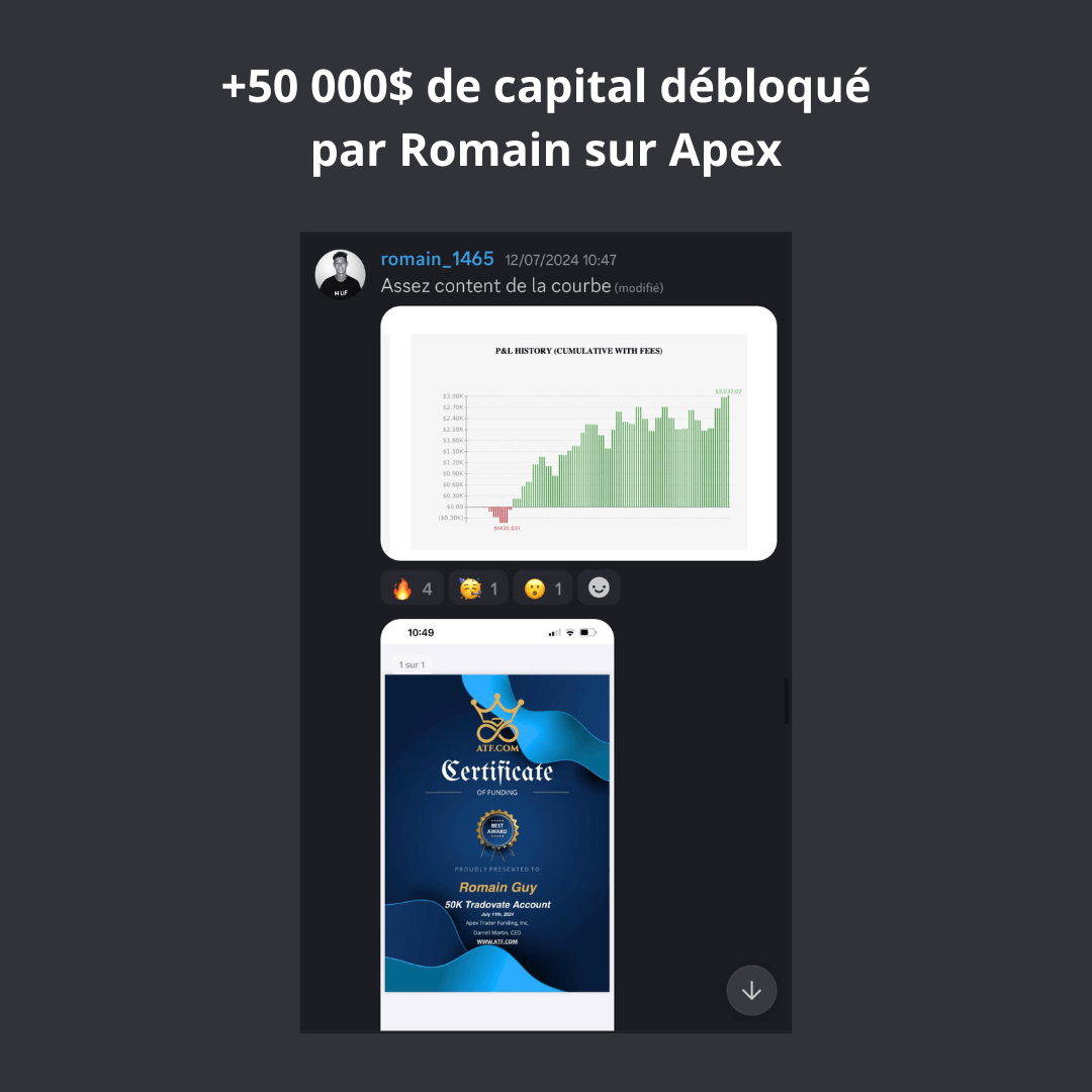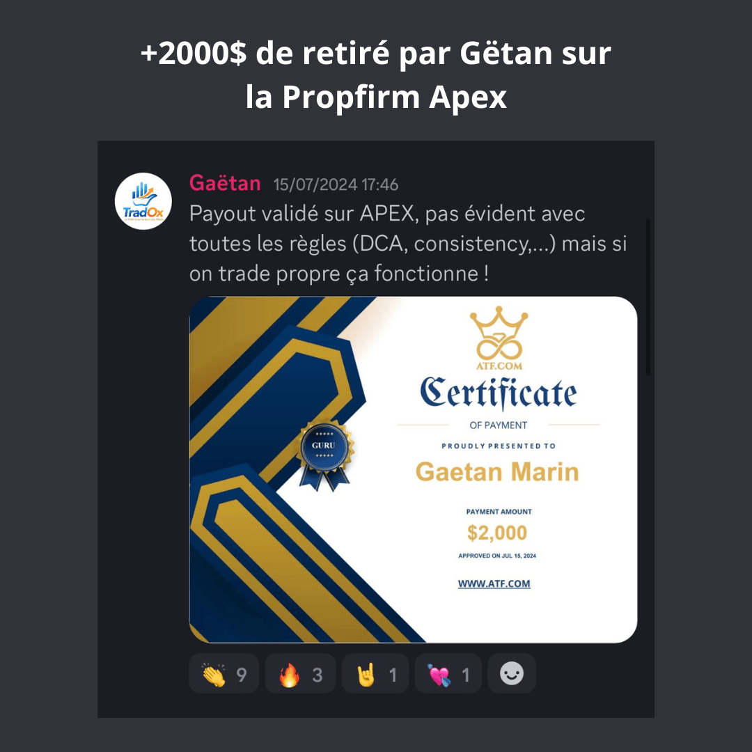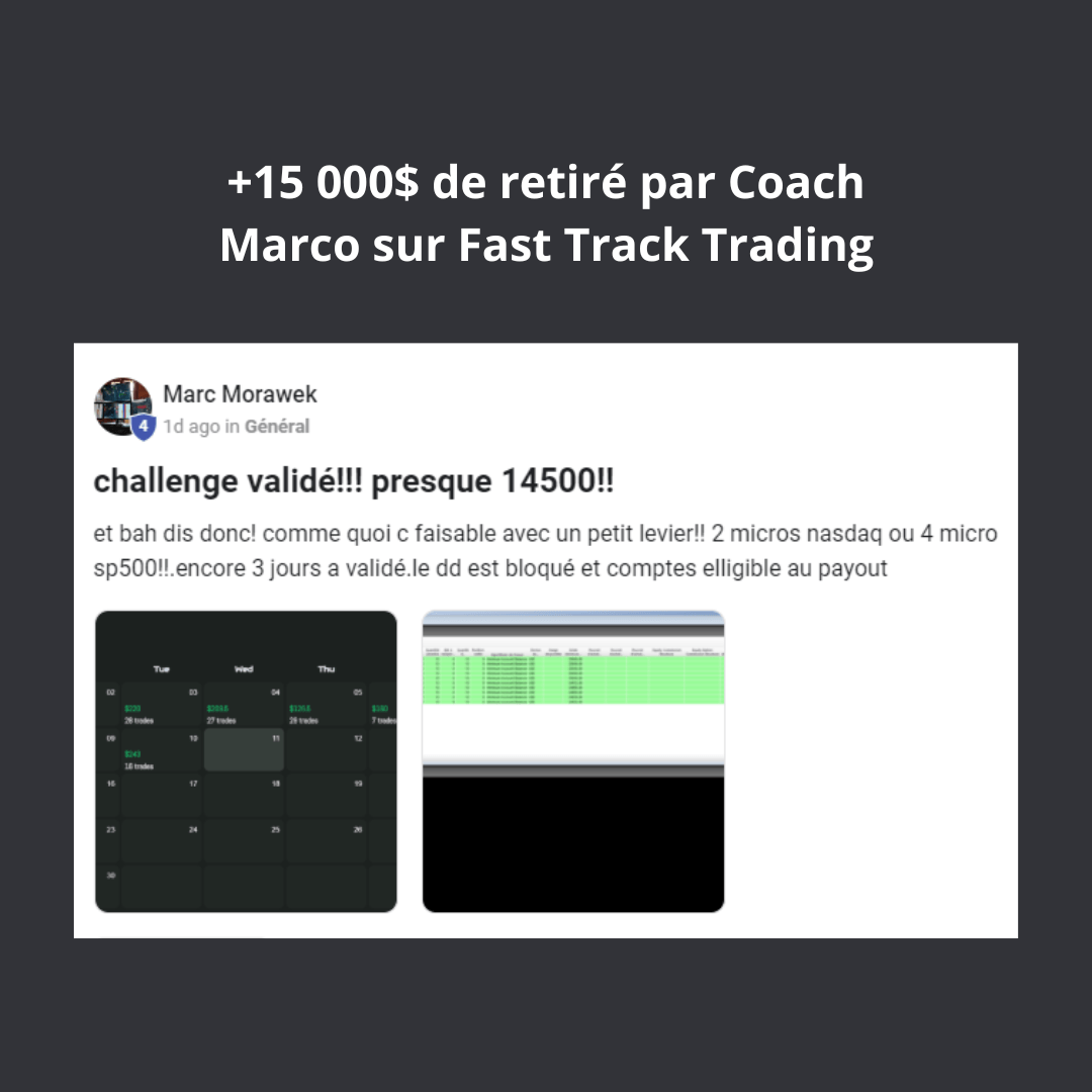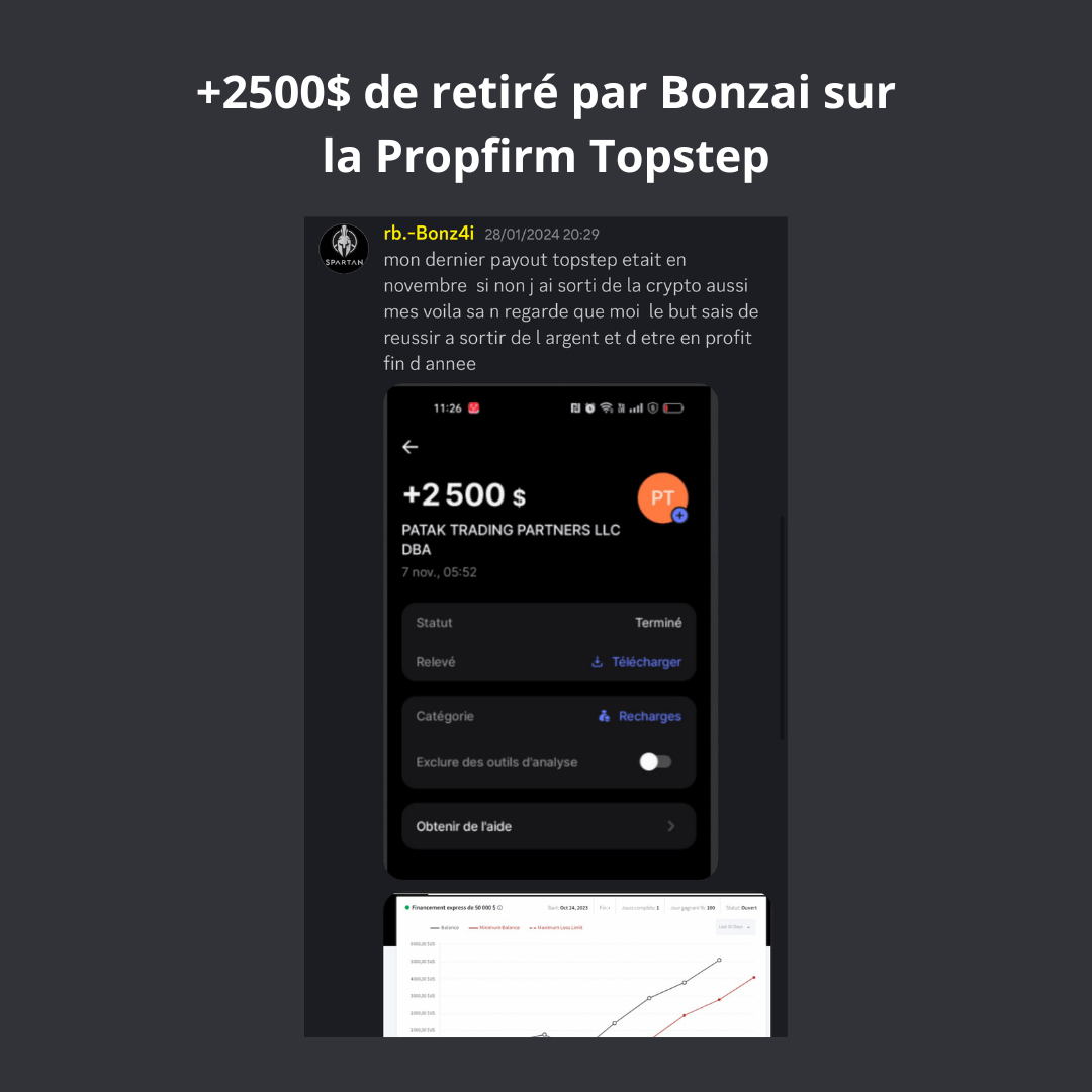 Un accompagnement continu jusqu’à l’obtention de ton premier retrait de 2 000 $ en PropFirm.